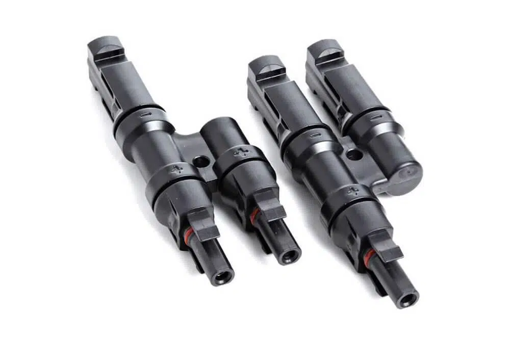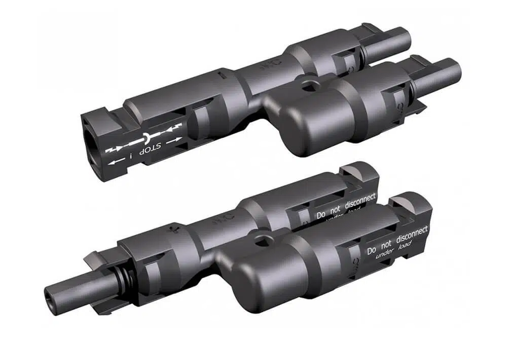 MC4 konnektörleri, dişi ve erkek olmak üzere çift olarak kullanılarak, güneş panelleri arasında ve güneş paneli ile invertör