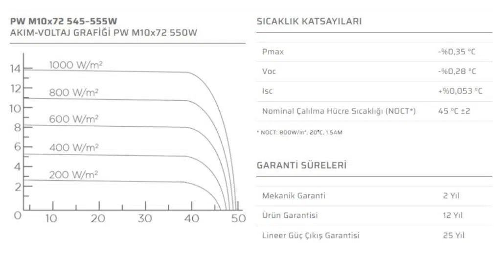 Maskimum Güç (Pmax) Wp | 545Wp | 550Wp | 555Wp |