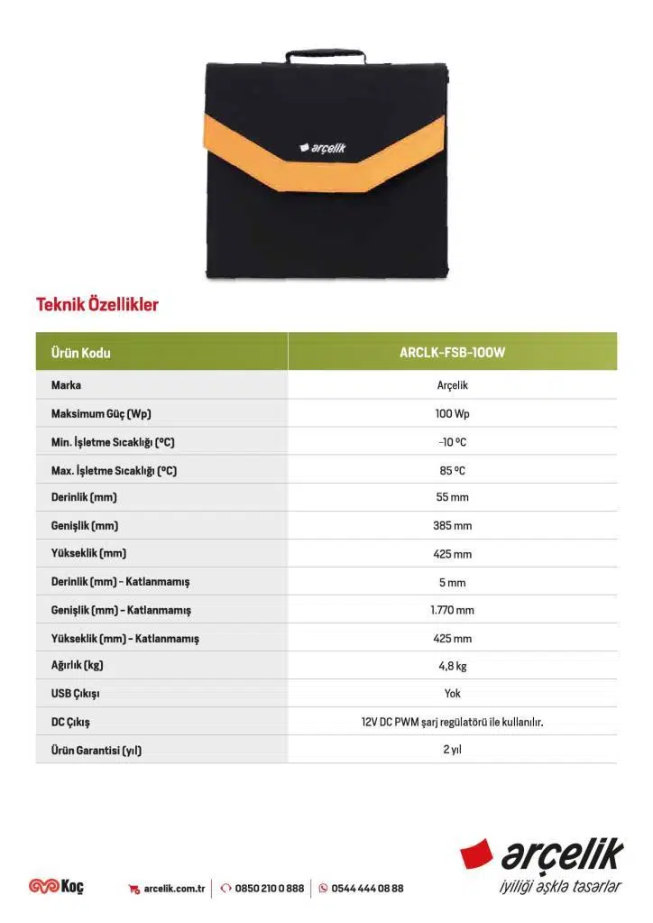 Arçelik 100W FSB Katlanabilir Solar Panel