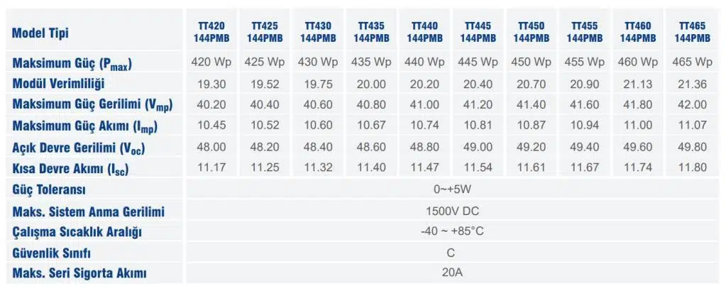 Maksimum güç gerilimi (Vmp): 41,40 V