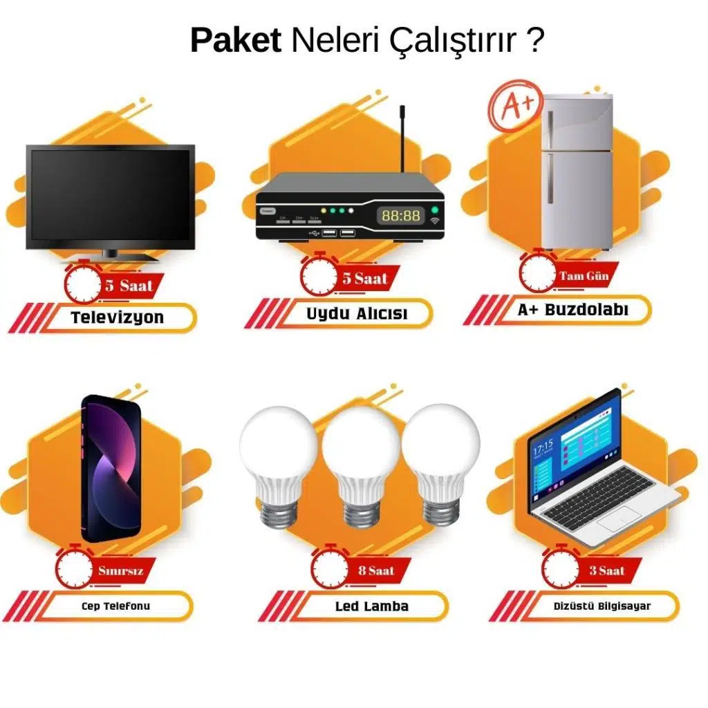 Bağ evi, karavan, kamp veya off-grid yaşam alanlarında temel enerji ihtiyaçlarınızı karşılayacak güvenilir ve ekonomik solar enerji sistemi! MPPT şarj regülatörlü bu paket ile aydınlatmadan buzdolabına kadar birçok cihazı kesintisiz çalıştırabilirsiniz.