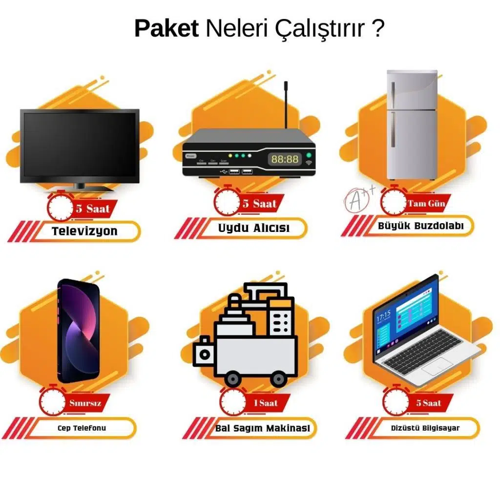 Bağ evleri, kamp alanları, off-grid yaşam ve acil enerji ihtiyaçları için ideal, yüksek kapasiteli bir güneş enerjisi sistemi! Güçlü bileşenleri sayesinde gündelik enerji tüketiminizi karşılar, şebeke bağımsız ve sürdürülebilir bir yaşam sunar.