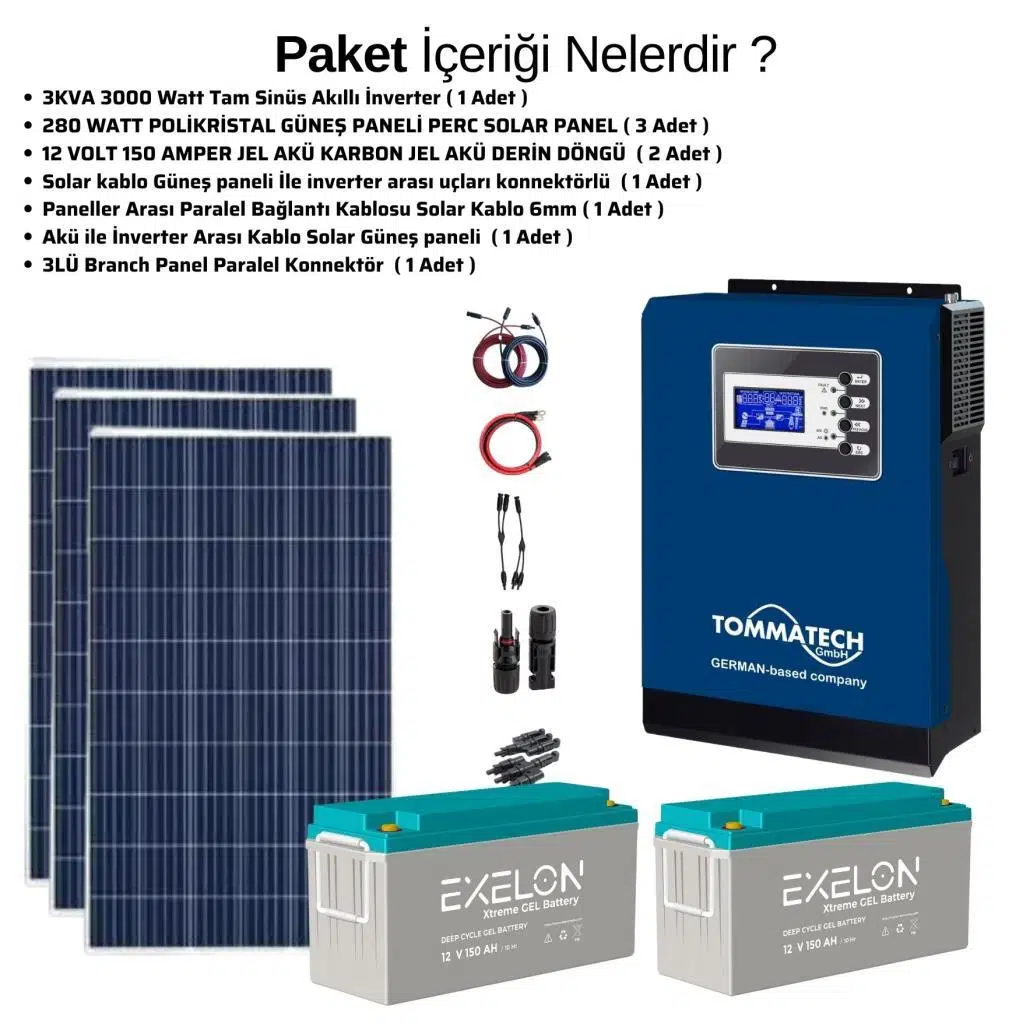 Etiketler | Güneş Enerjisi Bağ Evi Solar Paketi 3KVA İnverter 280W Güneş Paneli 150AH Jel Akü |