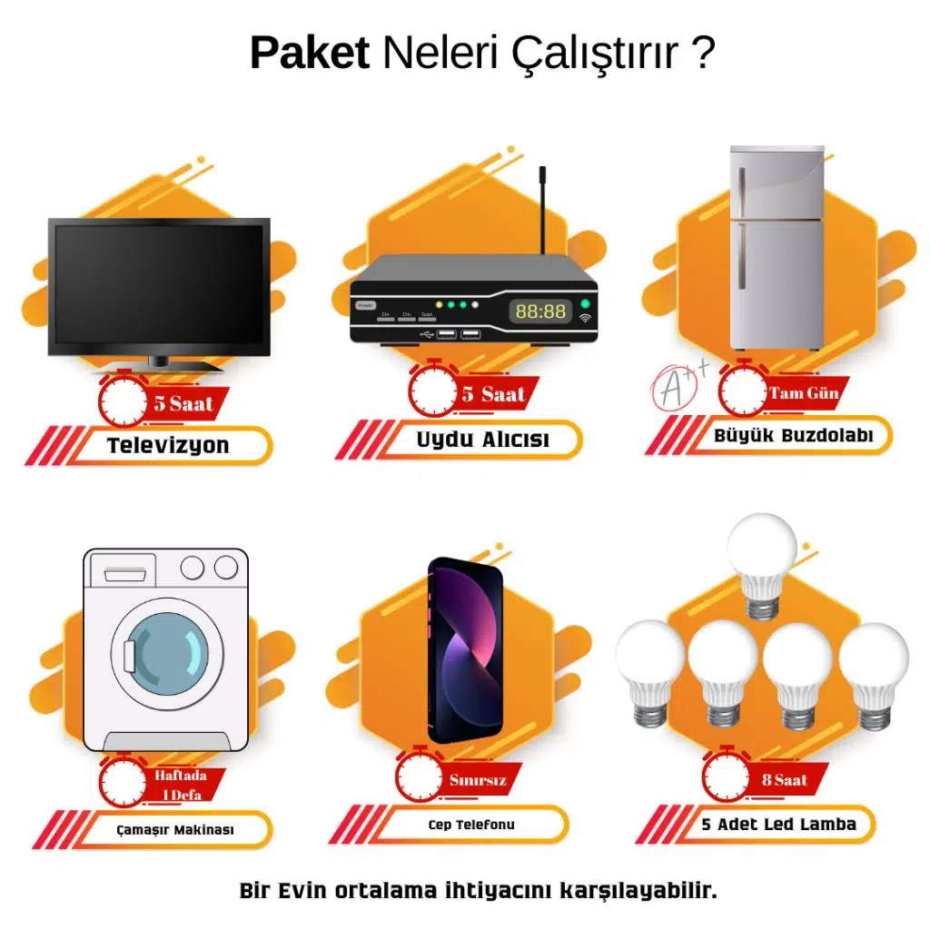 Elektrik şebekesinden bağımsız, çevre dostu ve sürdürülebilir enerji kullanımı için ideal çözüm. Bağ evleri, yazlıklar, yayla evleri, çiftlikler ve karavanlar gibi elektrik erişiminin zor olduğu alanlarda güvenle kullanılabilir.