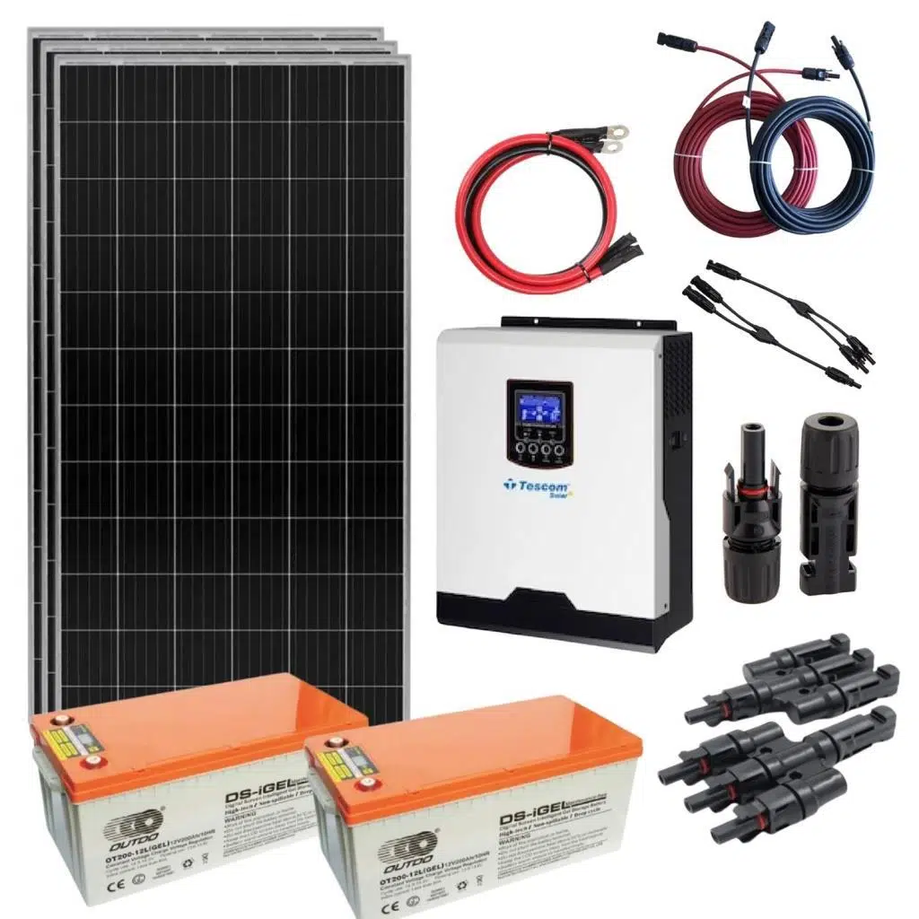 Elektrik altyapısının olmadığı bağ evi, karavan, kırsal yaşam alanı veya iş yeriniz için ideal olan bu 3kVA güneş enerjisi paketi, temel cihazları gün boyu kesintisiz çalıştırmanızı sağlar. Yüksek verimli 410W monokristal PERC paneller, derin döngü 200Ah jel aküler ve tam sinüs akıllı inverter ile uzun ömürlü ve güvenilir enerji sunar.