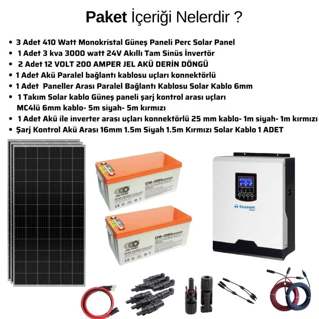 Güneş Enerjisi Solar Paketi 3kVA İnverter 410W Güneş Paneli 200Ah Jel Akü