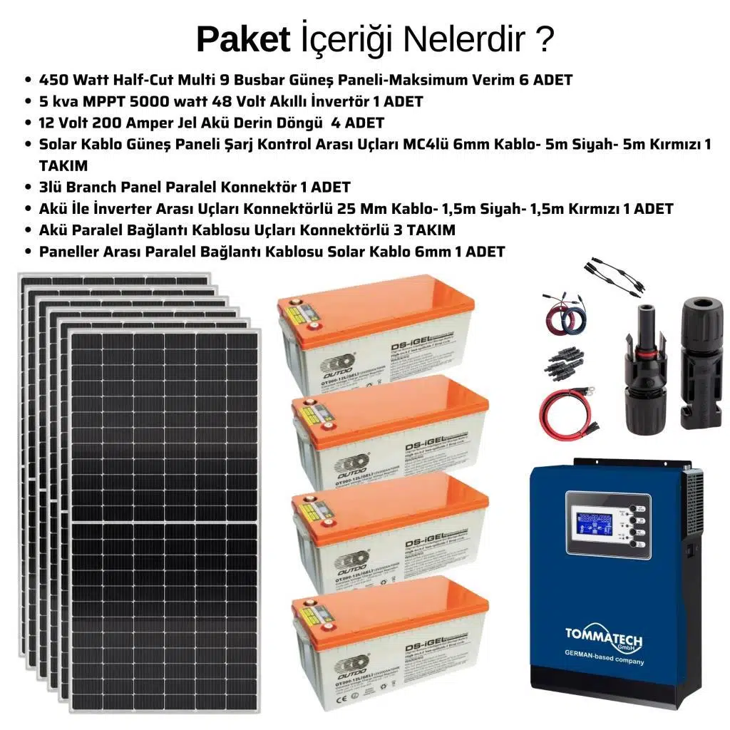 Güneş Enerjisi Solar Paketi – 5kVA İnverter, 6 x 550W Güneş Paneli, 4 x 200Ah Jel Akü