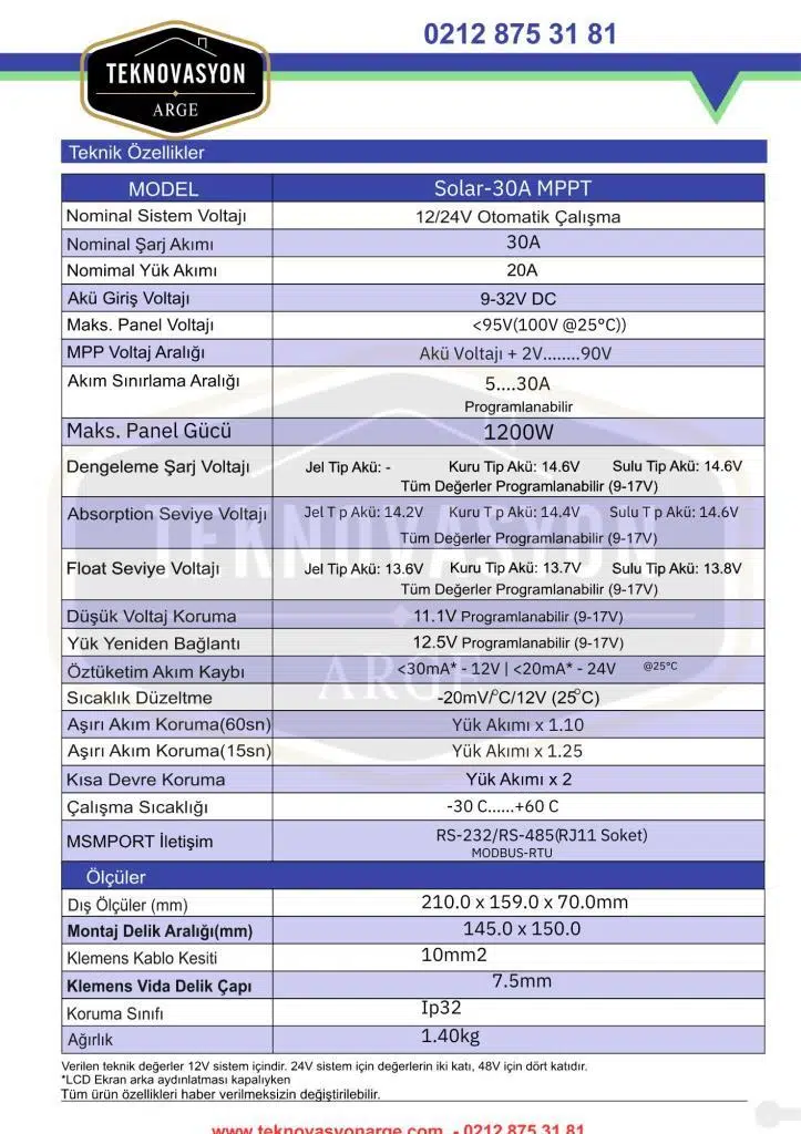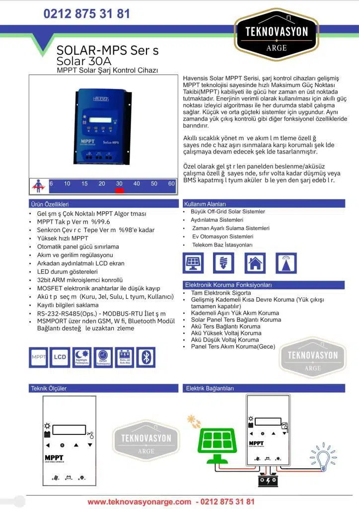 Havensis 30 Amper MPPT Şarj Kontrol Cihazı 12/24 Volt