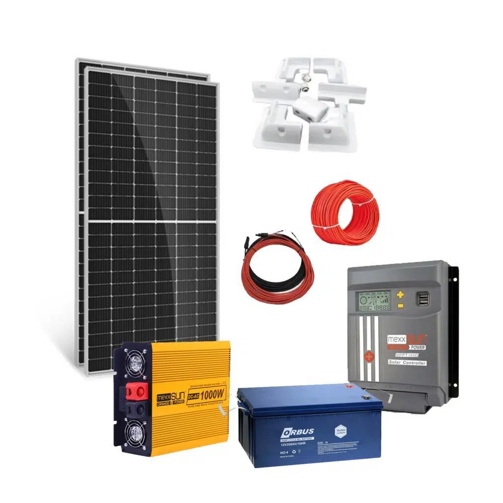Karavan Solar Enerji Paketi – 1000W Şarjlı İnverter, 2x205W Güneş Paneli, 200Ah Jel Akü, MPPT Regülatör