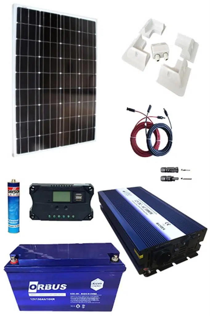 Karavan Solar Enerji Paketi – 1000W Tam Sinüs UPS İnverter, 205W Monokristal Panel, 100Ah Jel Akü