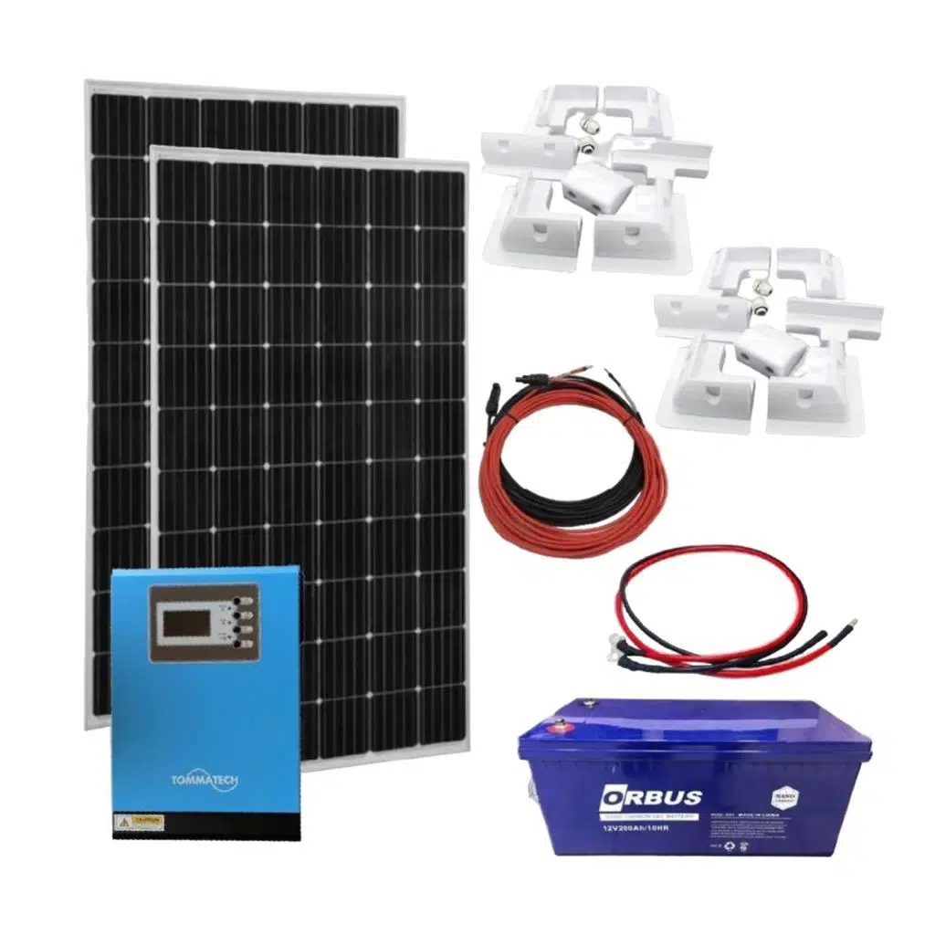 Karavan Solar Enerji Paketi – 1kVA MPPT İnverter, 2x205W Güneş Paneli, 200Ah Karbon Jel Akü