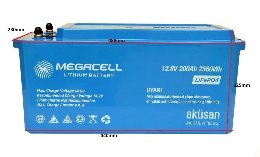 Etiketler | Megacell 12.8V 200Ah (Bluetooth) LiFePO4 Lityum Demir Fosfat Akü(ABS Kasa) |