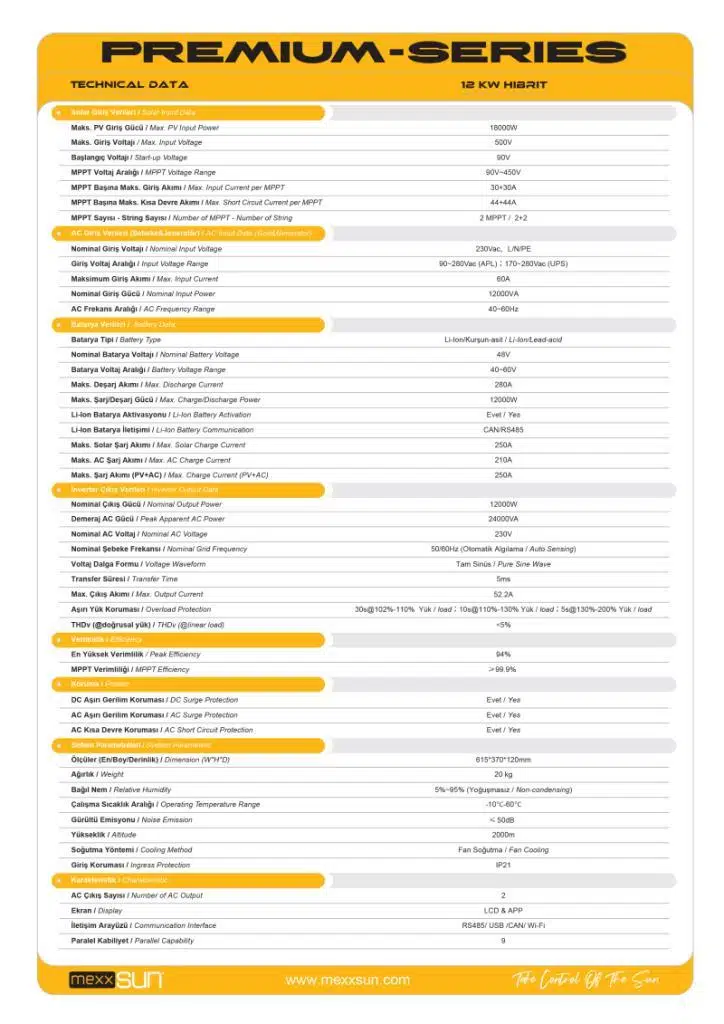 | Etiketler | Mexxsun Premium Series 48V 12kW Akıllı Off‑Grid / Hibrit İnverter |