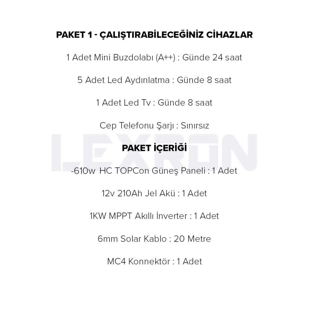 -610W TOPCon Güneş Paneli | : | 1 adet |