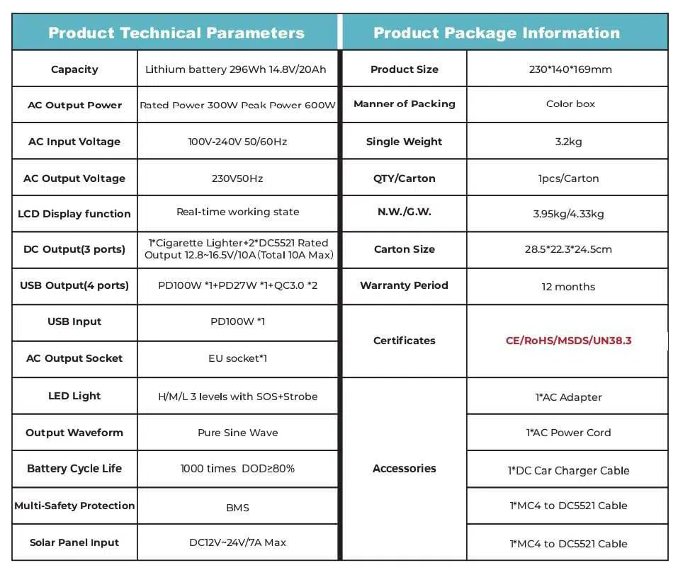 Orbus 300W , çeşitli cihazlar için farklı bağlantı seçenekleri sunar. USB portları, AC prizleri ve DC çıkışları, telefonlar, dizüstü bilgisayarlar, mini buzdolapları, ışıklar, televizyonlar ve daha fazlasını şarj etmek veya çalıştırmak için kullanılabilir. Ayrıca, bu güç kaynağı taşınabilirliği artıran kompakt bir tasarıma sahiptir ve taşımak kolaydır.