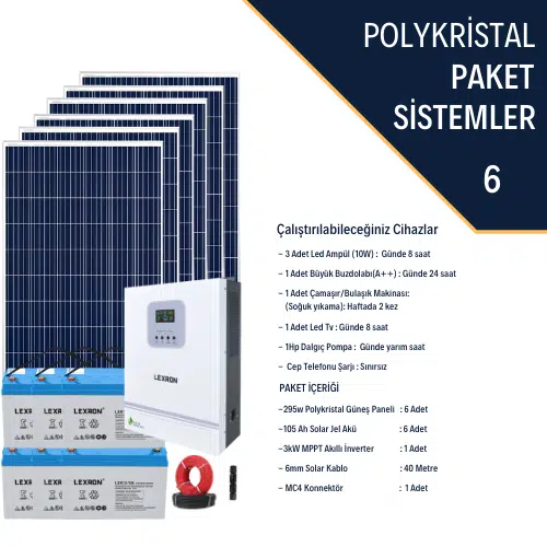 3kW MPPT İnverter, 6x295W Panel, 6x100Ah Jel Akü