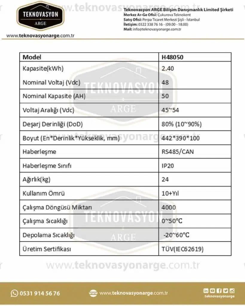 Pylontech H48050 Lityum Akü HV 48 Volt 2.4 KWh