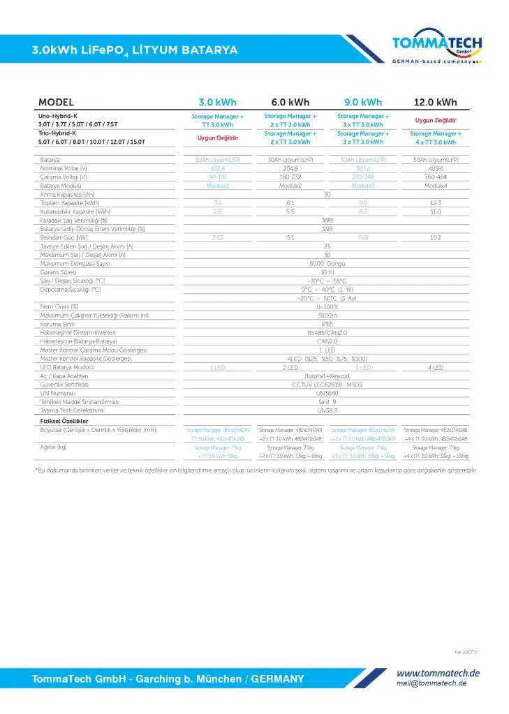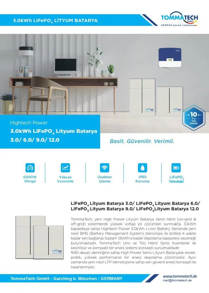 TommaTech 3kWh Lityum Batarya + Depolama Yönetim Sistemi