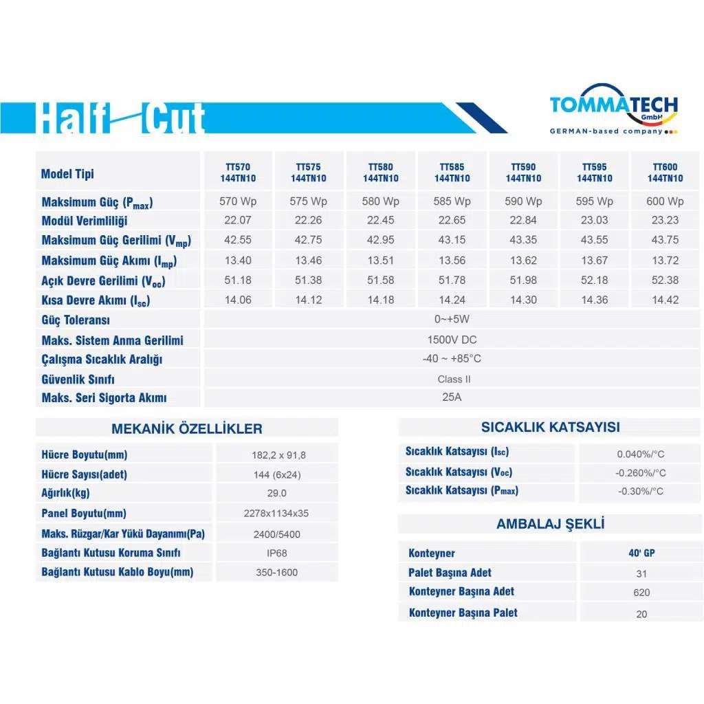 TommaTech 600W Half-Cut TOPCon Güneş Paneli
