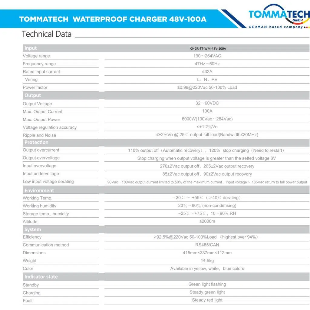 TommaTech Batarya Şarj Ünitesi Duvar Tipi 48V-100A