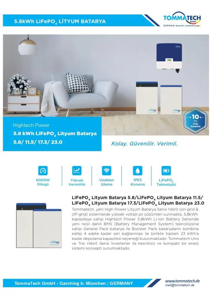 TommaTech Hightech Power GeneralPack 5.8kWh Lityum Batarya