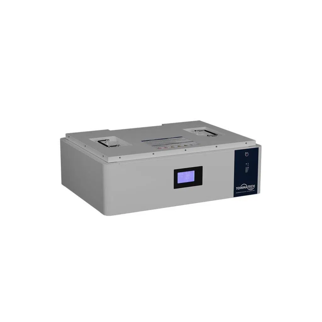 TommaTech’in yeni nesil LFP bataryaları, yüksek enerji yoğunluğu, uzun döngü ömrü ve gelişmiş haberleşme özellikleriyle güneş enerjisi sistemleri için ideal enerji depolama çözümleri sunar. Metal kasasıyla sağlam bir yapıya sahip olan bu batarya, aktif hücre dengeleme özelliğiyle maksimum verimlilik ve güvenlik sağlar.