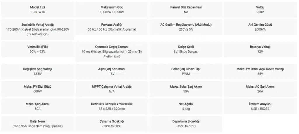 TommaTech New 1K 12V 1Faz Akıllı İnverter