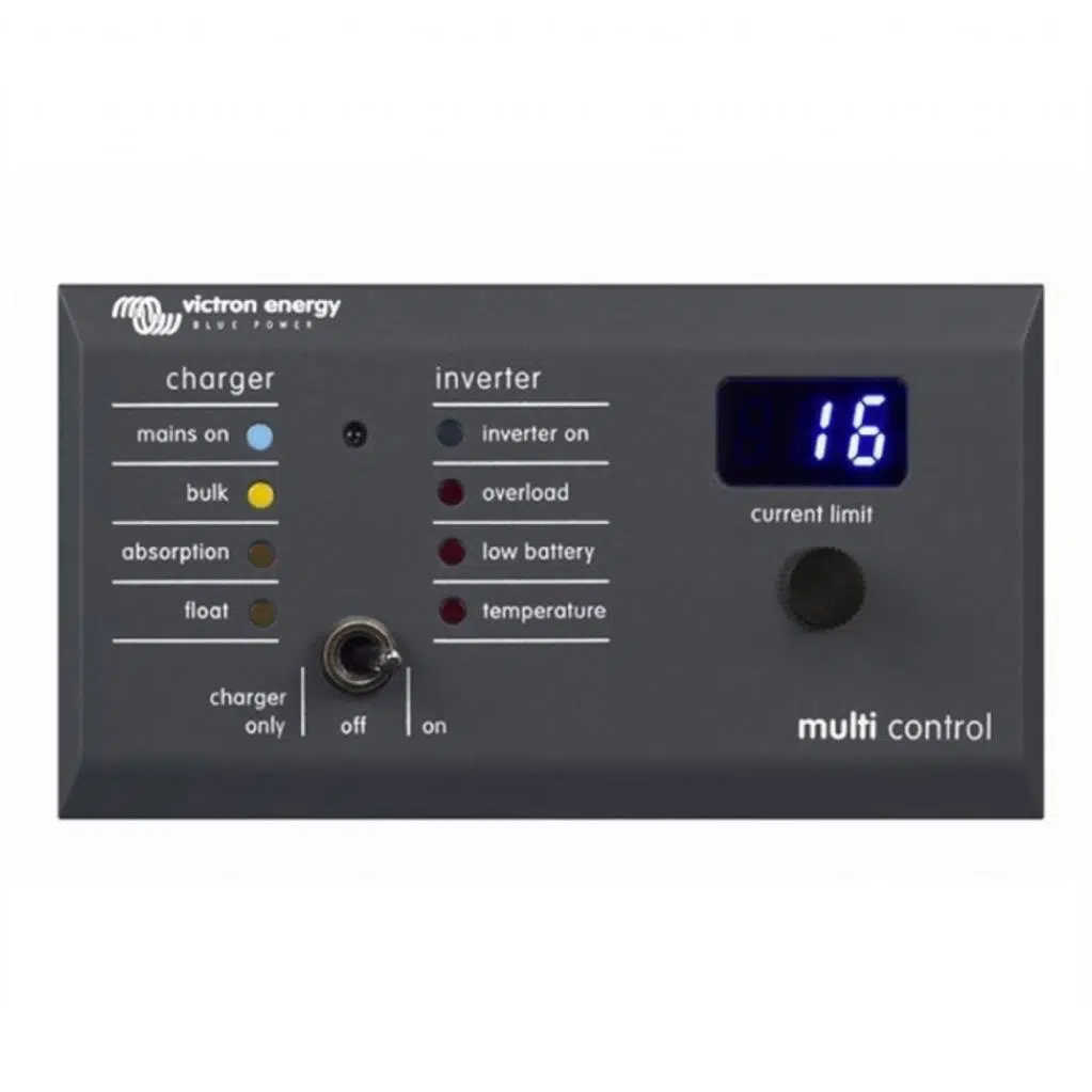 Bu panel hem Multi’ler hem de Quattro’lar için tasarlanmıştır. İki AC kaynağı için PowerControl ve PowerAssist akım limit ayarı sağlar: örneğin bir jeneratör ve kıyı kenar akımı. Ayar aralığı: 200 Ampere kadar. LED'lerin parlaklığı gece saatlerinde otomatik olarak azaltılır.